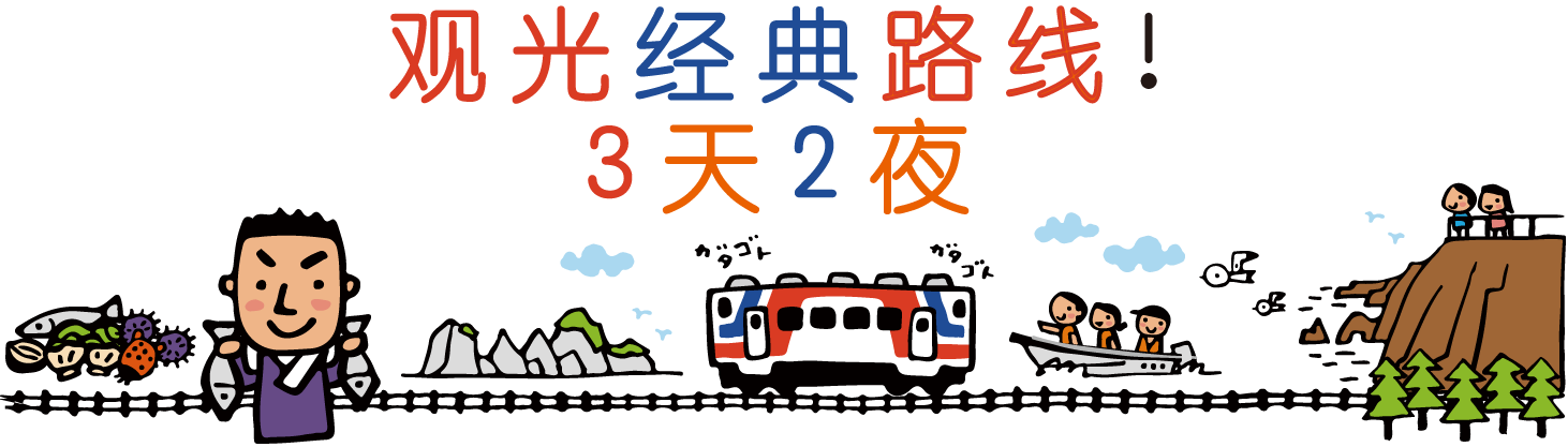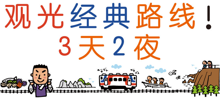 为您介绍一条以宫古站为起点,乘坐三陆铁道,用3天2夜时间巡游 ❶净土之滨 → ❷宫古海猫丸号 → ❸龙泉洞 → ❹北山崎小渔船探险之旅并附上全程时刻表的观光经典路线。第1天:宫古站 → 净土之滨漫步・乘坐宫古海猫丸号游船 → 宫古站